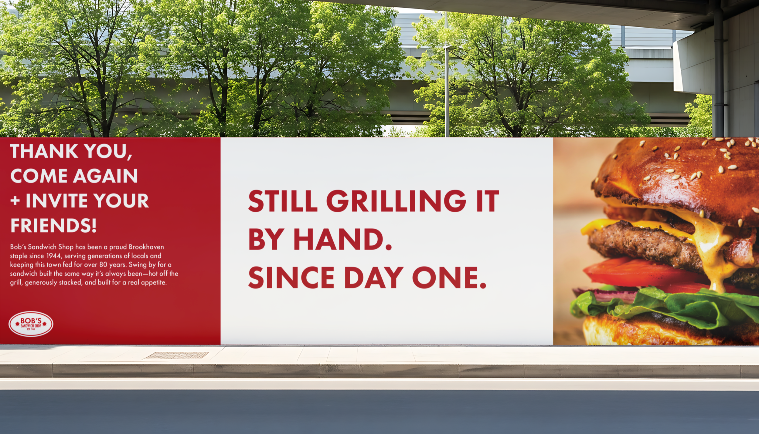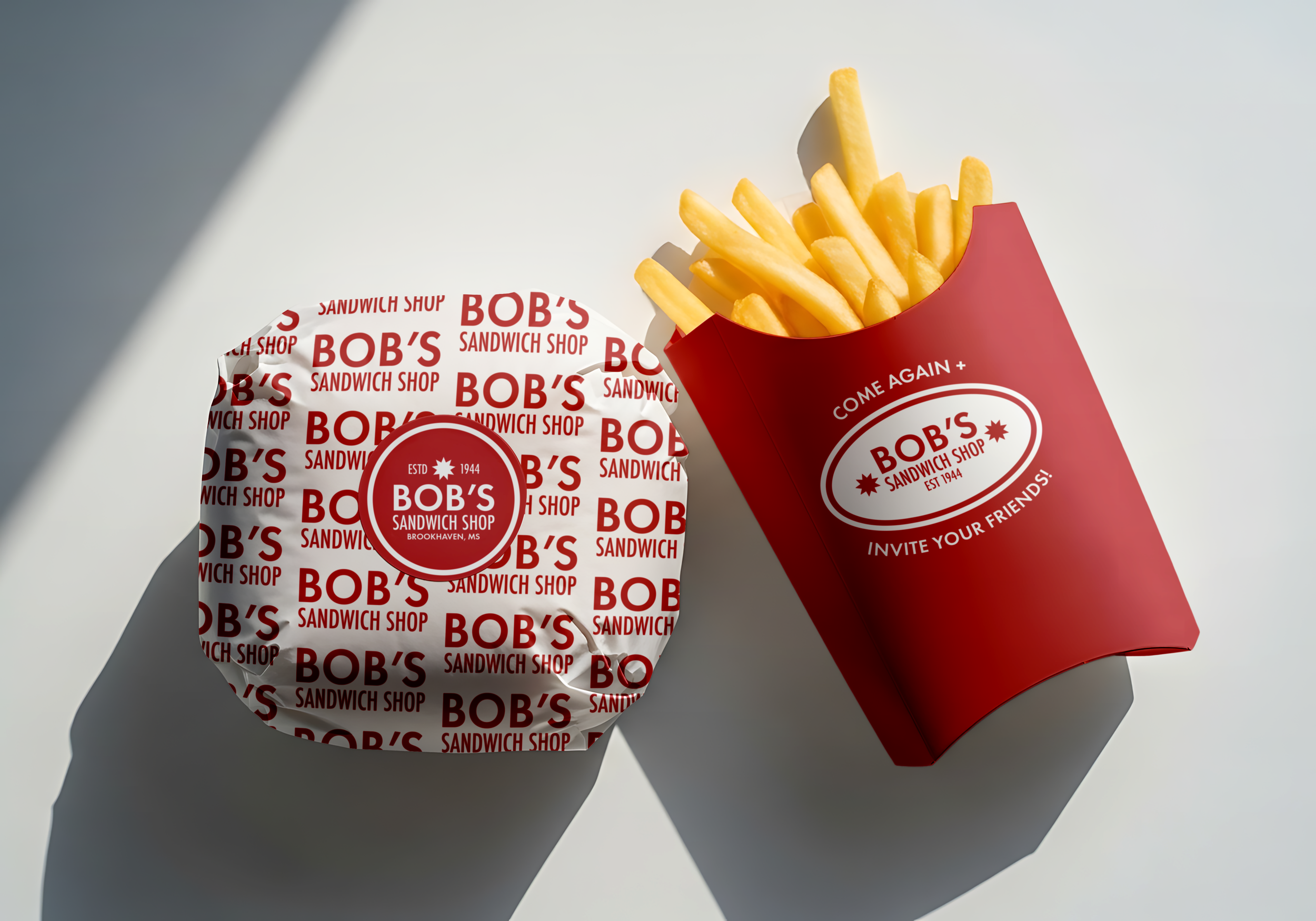 Bob’s Sandwich Shop has been serving Southern Mississippi for over 80 years, building a legacy on quality grub at an honest price and a steadfast commitment to community. To strengthen local visibility and celebrate this enduring history, a refreshed set of nostalgic yet progressive brand assets was developed. Drawing inspiration from the 1950s — the golden era of the American burger joint — the visual identity channels Futura’s clean lines and timeless simplicity. This blend of vintage influence and modern execution honors the brand’s roots while also repositioning it for the future.