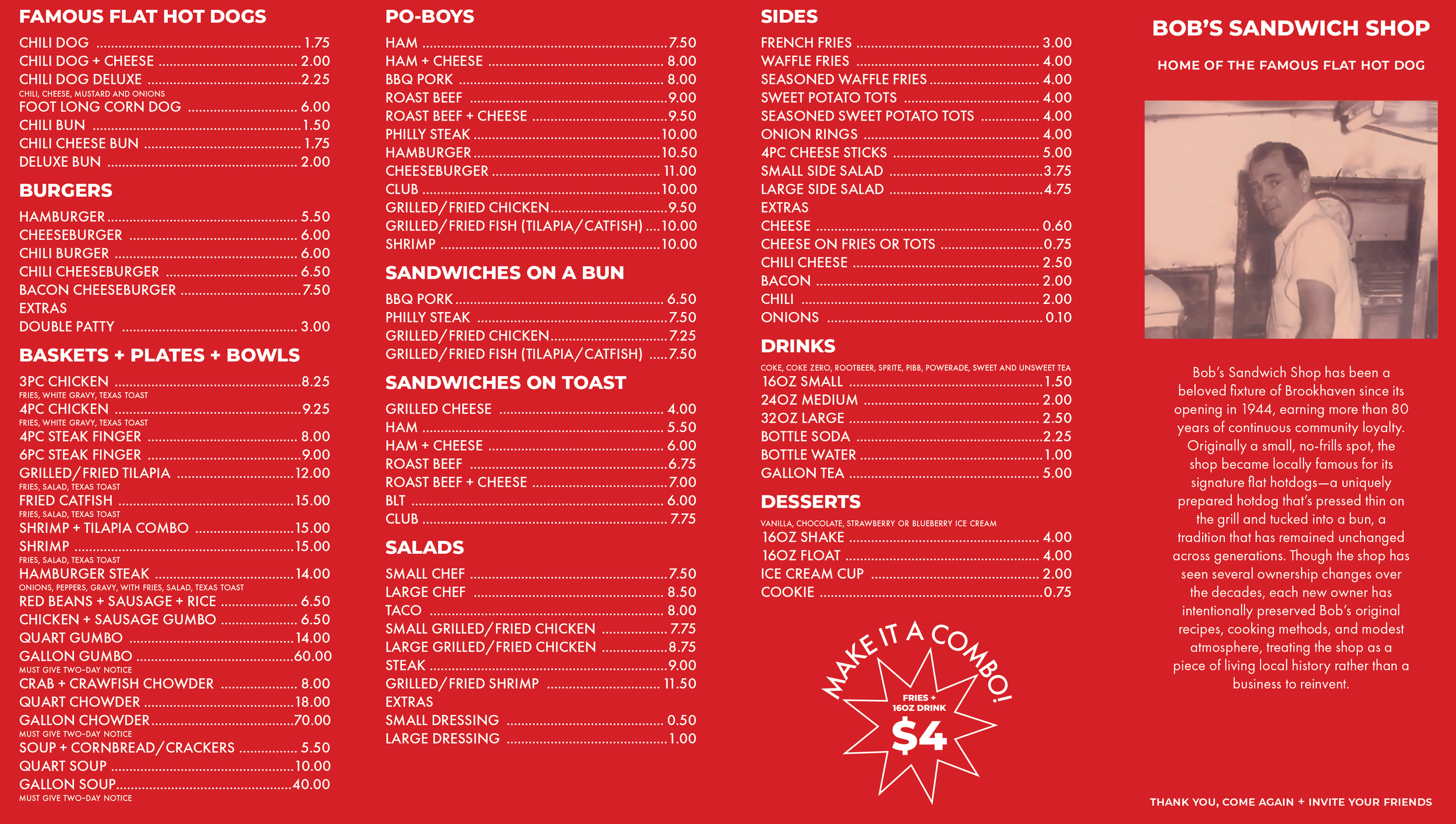 Bob’s Sandwich Shop has been serving Southern Mississippi for over 80 years, building a legacy on quality grub at an honest price and a steadfast commitment to community. To strengthen local visibility and celebrate this enduring history, a refreshed yet nostalgic brand identity was developed. Drawing inspiration from the 1950s — the golden era of the American burger joint — the visual identity channels Futura’s clean lines and timeless simplicity. This blend of vintage influence and modern execution honors the brand’s roots while also repositioning it for the future.
