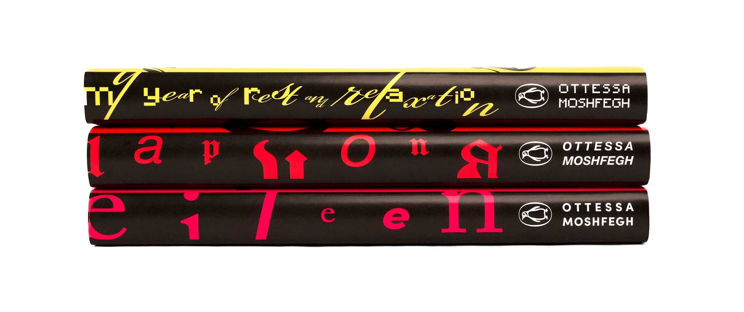 Moshfegh’s novels don’t just tell stories—they unsettle and linger. This design follows suit with a juxtaposing black and neon palette, symbolizing contrast and unease. Each cover utilizes dual typefaces to embody the tension and narrative of each book. Every detail is considered, even the fine print incorporates dual typefaces. Go ahead, zoom in.